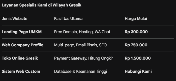 - Harga jasa pembuatan website di Gresik 2026"